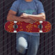 Orange silhouette branch leaves on red skateboard