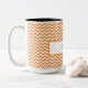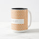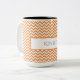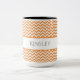 Enjoy your morning coffee with an amusing Orange Simple Chevron Personalised Coffee Mug. Mug design features a simple chevron pattern and area you can personalise with your name. Additional gifts available with this design as well as a variety of colours.