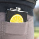 Round slice of orange icon. Custom background colour. Custom text.