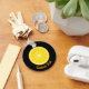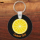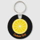 Round slice of orange. Custom background colour. Custom text on both sides.