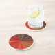 This sandstone coaster features a decorative geometric abstract design. Brilliant colours of red, orange, gold, brown, yellow and green all converge in a vortex pattern with repeating triangles of various woven textures.