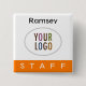Easily personalise our square pin back button name badge with your company logo, staff name, or other custom text. It attaches with a safety pin back. Sold in orange and other colours (all colours are customisable). Our square buttons are 2 inch x 2 inch. Made in USA. No minimum order quantity and no setup fee.
