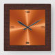 Orange Stainless Steel Modern Burlap Border Square Wall Clock