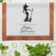 Infuse your kitchen with a spooky design with this Orange Starburst Witch Halloween Kitchen Towel. A curvy witch silhouette stands beside a standing broomstick, framed by glowing jack o lanterns against a vibrant starburst background. The Happy Halloween text in elegant script adds festive charm. Made from soft, absorbent cotton, this towel is ideal for drying dishes or as a bold Halloween kitchen accent. Durable and machine-washable, it’s perfect for your spooky season celebrations.
