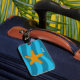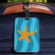Orange Starfish Blue Waves Luggage Tag