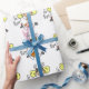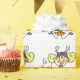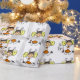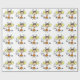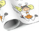 Wrapping paper with a cute stick figure cheerleader in an orange uniform with yellow pom poms.