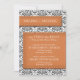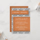 Trendy and modern invitations for your Wedding. Features an orange stitched design/illustration over a black and white damask pattern. Additional information, directions, or details may be printed on the back (optional).
