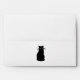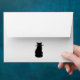 A Halloween invite envelope, with an orange striped pattern on the inside, and a black cat on the back and also on the front in the bottom left corner. This Halloween envelope has been created especially to match the invitation which you can see here: https://www.zazzle.com/full_moon_cat_and_pumpkin_halloween_invitation-256076989381865300