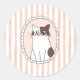 Soft, muted orange stripes create a warm and cosy background for this adorable cat sticker featuring a cute kitty sitting in the centre. The gentle colour palette gives the design a calm, aesthetic feel while still highlighting the playful feline illustration. Perfect for decorating laptops, water bottles, notebooks, planners, phone cases, and journals, this sticker adds a subtle touch of personality without being too bright.