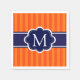 Orange Stripes Navy Blue Custom Monogram Initial Napkin