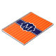 Modern and stylish orange stripes with navy blue banner frame design in middle forn your personalised monogram initial.