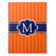 Orange Stripes Navy Blue Custom Monogram Initial Notebook