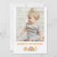 Our little miss onederful 1st birthday invitation for a baby girl featuring a sun, rainbow and text in orange and natural colors. This girls miss onederful first birthday invitation has a photo on the back.