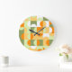 Orange Sunny Yellow Dark Green Retro Art Pattern Large Clock