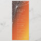 An elegant diamond spider web and stars against an orange sunset background. Room for four courses plus extra details at the bottom. All text is fully editable, so you can easily add or delete text and change the font style/size/colour/layout to suit your needs. The back is mostly blank, so more text can be added there if you wish. This design is available in other colours, on different sized card-stock and also on coordinating invitations and accessories.