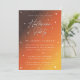 An elegant, modern Halloween Party Invitation featuring white handwritten script and scattered stars against a lightly distressed orange sunset background. All text - apart from the 'Halloween Party' script - is fully editable, so you can easily add or delete text and change the font style/size/colour/layout to suit your needs. This design is available in other colours, on different shaped card-stock and also on coordinating accessories.