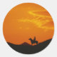 Orange Sunset with Cowboy Silhouette Classic Round Sticker