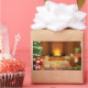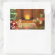 Family of orange or red tabby kitty cats gather around the Christmas tree and fireplace while the kittens play and older cats just look on in contentment cat lovers holiday sticker