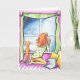 Orange Tabby Cat n Girl Window Christmas Holiday Card