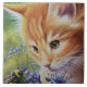 Orange Tabby Kitten & Bumblebee Watercolor Art Ceramic Tile