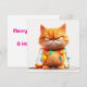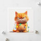 This orange tabby cat wrapped in colorful lights and a scowl is sure to bring smiles to everyone on your holiday card list. Perfect for fans of humor and feline charm.