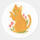 Orange Tabby with Tulips Classic Round Sticker. Attention lovers of all things feline, this is perfect for you. Get this sticker of a Tabby posing with tulips. Personalise laptops, water bottles, windows, walls and more with this unique image. Perfect for cat parents and those into animal imagery. Includes ai design.