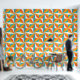 Orange, Teal and White retro colours with a vintage vibe abstract pattern stick and peel wallpaper.