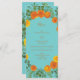 Orange & Teal Aqua Peony & Rose Wedding Menu