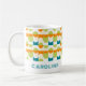 Beautiful contemporary bright orange, teal blue, lime green, and white coloured geometric circles and half circles pattern on a white background. With the option to customise or personalise with a name, monogram, or initials of your choice. Ornate, elegant, stylish, and eclectic design for the fancy artistic fashionista, the artsy fashion diva, popular hip trendsetter, vintage retro art style, and abstract digital geometric motif lover. Show off your style, look fashionable, and feel stylish with a unique design on a coffee or tea mug of your choice.
