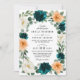 Orange Teal Turquoise Blue Elegant Floral Wedding Invitation