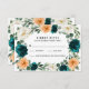 Orange Teal Turquoise Blue Wedding RSVP Cards - feature an elegant eucalyptus and greenery wreath decorated with ivory/white, orange and deep teal/turquoise flowers. View the matching collection on this page to find coordinating products to complete your theme.