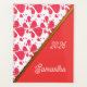 This customizable planner cover features hand-drawn orange teardrop leaves filled with a delicate purple and beige pattern. A bold gold stripe slices diagonally across the page, adding contrast and elegance. Personalize it with any name and year in crisp white script. It’s perfect for school, journaling, or gifting. It's designed to stand out on any desk.
