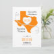 A casual and fun way to share your joy well in advance of your big day. Send these Texas save the date cards out to all your family and friends. Design features a large state shape with a heart made from a white ribbon with black dashes. Space inside the heart for your date and at the bottom for your location. Backside features a coordinating gingham pattern. Perfect mix of classy and rustic in case you haven't decided what style you're going with! Available Texas school colours of red, green, dark green purple, maroon, and burnt orange as well as blue and black. Matching products available.