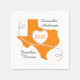 A casual and fun way to share your joy on your big day. Design features a large state shape with a heart made from a white ribbon with black dashes. Space inside the heart for your date and at the bottom for your location. Perfect mix of classy and rustic for any Texas wedding! Available Texas school colours of red, green, dark green purple, maroon, and burnt orange as well as blue and black.