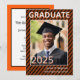 School colours in Orange diagonal stripes and Photo Graduation Invitation. Add your graduate's photo and party or commencement information.