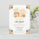 Gender neutral triplets baby shower invite. Three little cuties are on the way baby shower - design features watercolor oranges clementines citrus fruit botanical and vintage truck. Easy to personalise with your baby shower information.