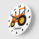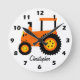 Orange Tractor Design Personalised Round Clock