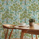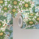 Elevate your home decor with this exquisite vintage wallpaper featuring a beautiful 'Orchard' pattern, inspired by the timeless designs of William Morris. This intricate design showcases large blue and green acanthus leaves intertwined with small orange trees bearing oversized oranges and lush green foliage. Set against a pale background adorned with small blades of grass and delicate red flowers, this wallpaper brings a touch of nature's beauty indoors. The harmonious blend of colours and detailed botanical motifs create a serene and sophisticated atmosphere, perfect for enhancing the decor of any room. Ideal for feature walls, living rooms, bedrooms, or dining areas, this wallpaper effortlessly combines classic elegance with natural charm.