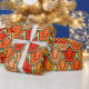 This wrapping paper has an art deco design of tulips from pentagons and trapezoids in different shades of orange.