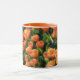 This floral mug features my original photograph of a garden of orange tulip flowers. I processed my photograph with an oil pastel painterly style or an artsy flair. The handle and inside of the cup are orange to complement the artwork.