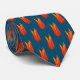 Blue tie with orange tulip flower pattern