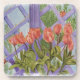 ORANGE TULIPS WITH PURPLE LATTICE COASTERS