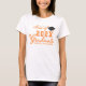 Create a personalised Class of 2025 Graduate t-shirt with orange typography for graduation celebration. Design is decorated with a black grad's cap illustration. Template makes it easy to type the grad's name and type a year.
