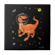 Orange Tyrannosaurus Dinos In Space Ceramic Tile