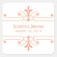 Simple and elegant Fancy Ornamental Wedding Stickers in orange and white featuring a sophisticated art deco style ornamental flourish border. Easy to customise, simply add your wedding details in the text fields provided. Click "Customise It" to find more personalisation options.