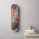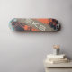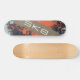Skateboard design in orange with graphic elements, inscription in the central part and climbing plant.