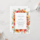 This artistic design showcases a lush arrangement of watercolor poppies and ranunculus in warm shades of orange, coral, and peach. Delicate green leaves weave throughout the blooms, creating a vibrant and natural aesthetic. The soft, painterly style is ideal for a seasonal outdoor ceremony with a bright and joyful palette.