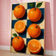 Add a bold burst of colour to your space with this retro-modern orange fruit art print, featuring six juicy oranges arranged on a striking blue-and-white chequerboard background. This vibrant design blends vintage kitchen aesthetic with contemporary pop art vibes, creating the perfect balance between playful and polished.