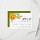Orange watercolor bouquet of flowers script typography wedding RSVP card with meal choice. It features a beautiful bouquet of cactus flowers and succulent leaves in orange and your text. The word RSVP is in script typography. The back is of solid green colour.