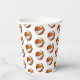 These basketball birthday party paper cups feature multiple small orange & white basketballs arranged in a simple drop pattern - text on a white circle graphic can be customised, currently the number 14 to represent a child's age encircled by the words, "Happy birthday" - by katz_d_zynes
